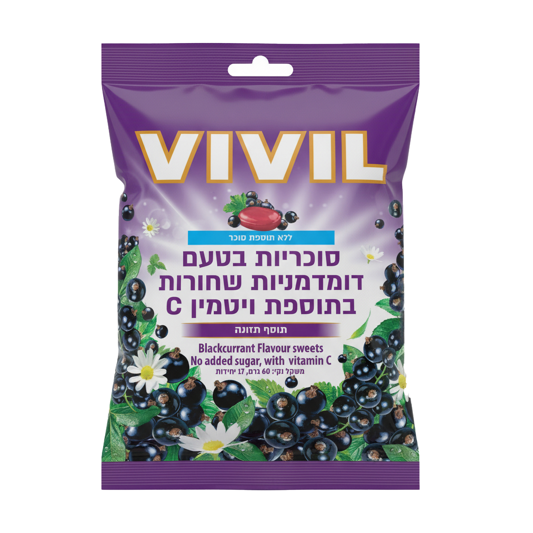 ויויל - ויויל סוכריות ללא סוכר בטעם דומדמניות בתוספת ויטמין C