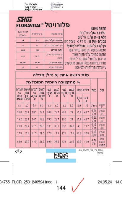 ילדים בגיל 4-8: 5 מ"ל (כפית), פעם ביום לפני האוכל. ילדים בגיל 9-18: 10 מ"ל (שתי כפיות), פעם ביום לפני האוכל. מבוגרים: 10 מ"ל (שתי כפיות), 1-2 פעמים ביום, לפני האוכל.
